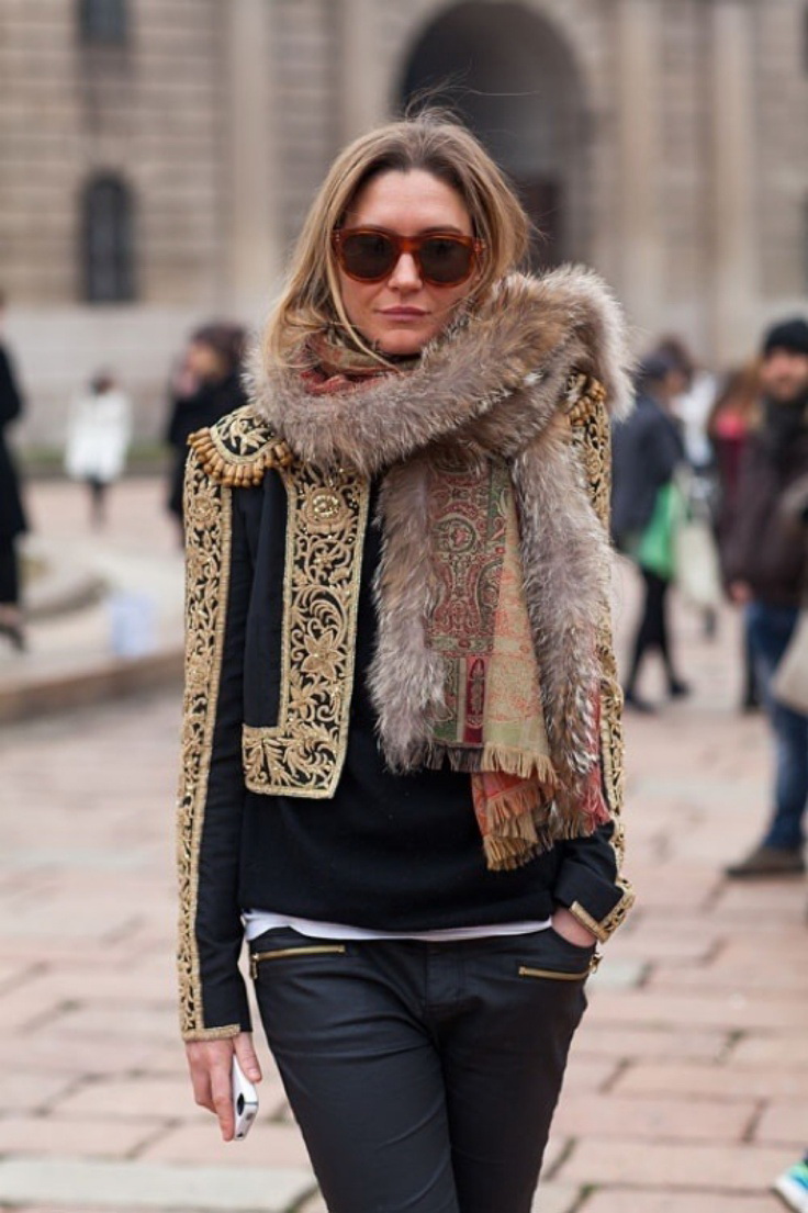 For a casual style, luxe jeans embroidered with gold motifs will fall in the way. Such clothes can be likened to a work of art and will certainly cost a fashionable woman in a round sum, but it's worth it.