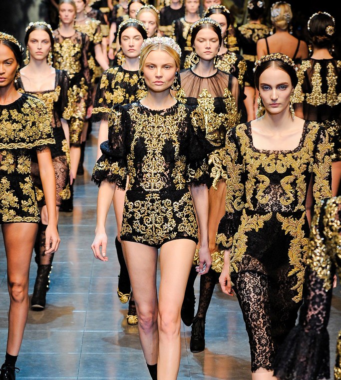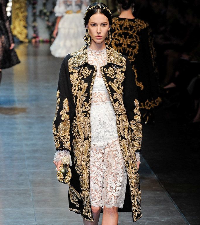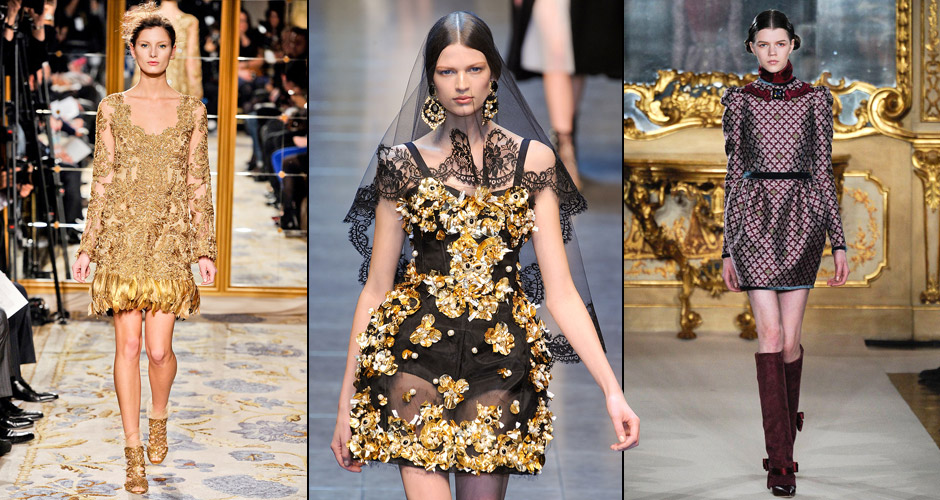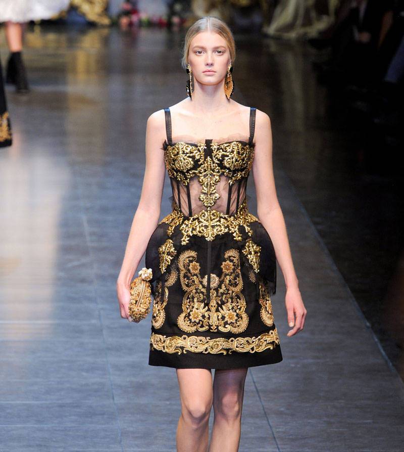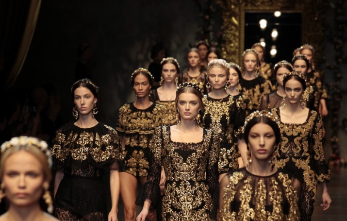 It cannot be said that modern baroque exactly repeats the fashion of the 17th century, but there are still common features of this style in the past and today. Currently, this trend in fashion is a source of inspiration for many world-famous designers, for example, its influence can be traced in the collections of Dolce & Gabbana. The favorite technique of many designers is the use of expensive brocade and velvet fabrics and an abundance of golden patterns.