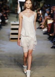 Looking at the latest fashion shows of famous designers, we can single out another trend of the underwear trend in clothes. To include this style in your image, it is enough carelessly and unobtrusively to demonstrate one of the elements of underwear. Sexy and stylish will look a beautiful bra that looks out from under a T-shirt or top. The elastic of the panties can also, as if by chance, remain naked in jeans or pants. The most popular way to use this type of underwear style is to wear a shorter skirt or dress over a petticoat with a lace edge that is visible.