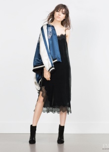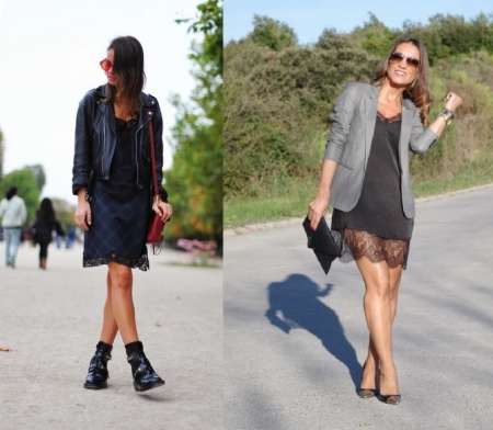 Dress combination can be both short and long. The decor of this dress is limited to inserts of lace or guipure. In this outfit, you can go to an informal event or visit a cultural institution. It is necessary to choose the right accessories for the dress to make the image harmonious and complete. As a handbag, you can choose a clutch that is not overloaded with decor, you can also choose elegant small jewelry. The perfect pair of shoes for the evening version will be graceful sandals with heels.