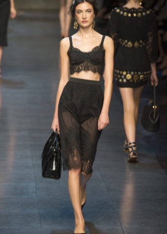 Tops, skirts and dresses with lace trim in black look sexy. With things of this color, it is easier to combine other clothes, and the black color visually makes the figure slimmer. Especially good black color will fit into a business image.