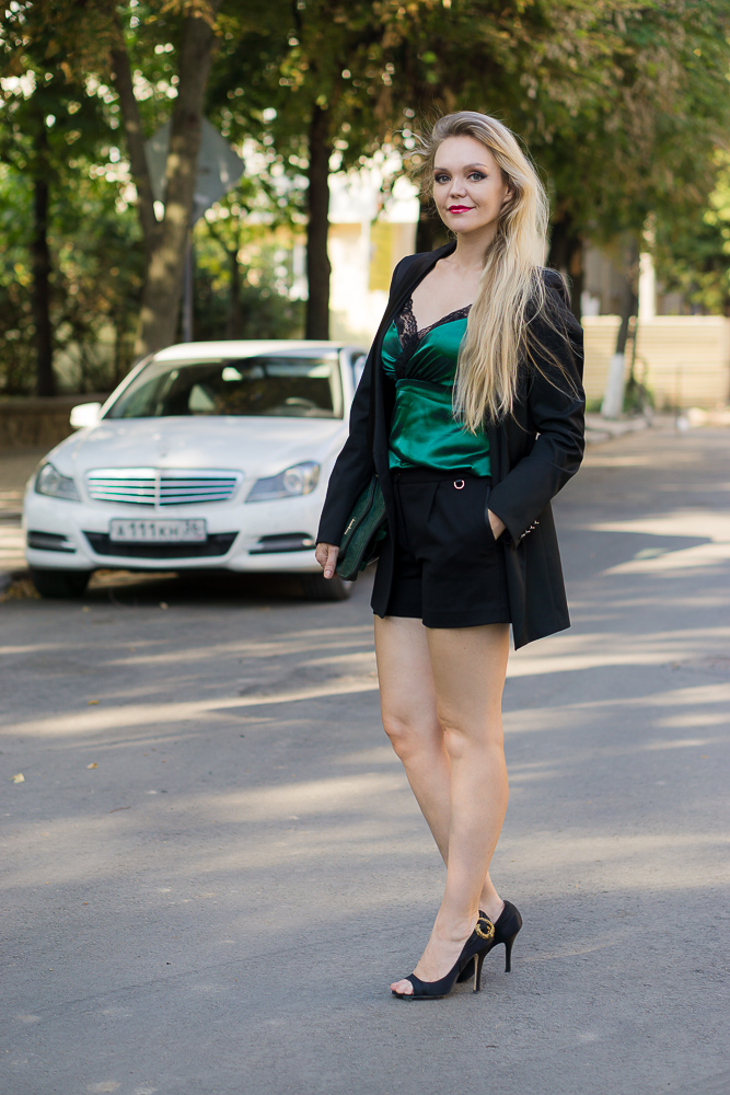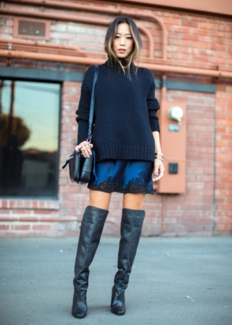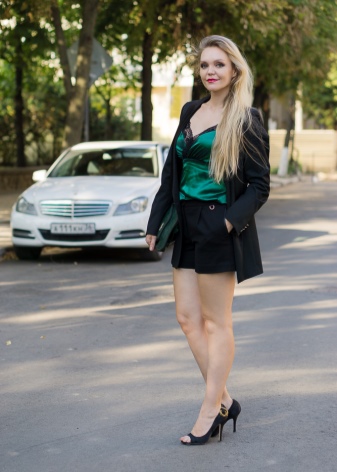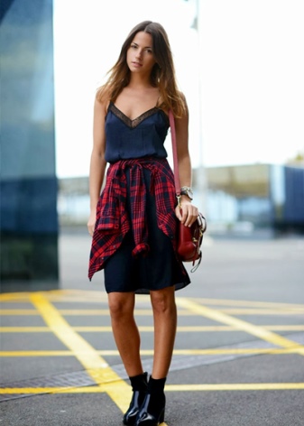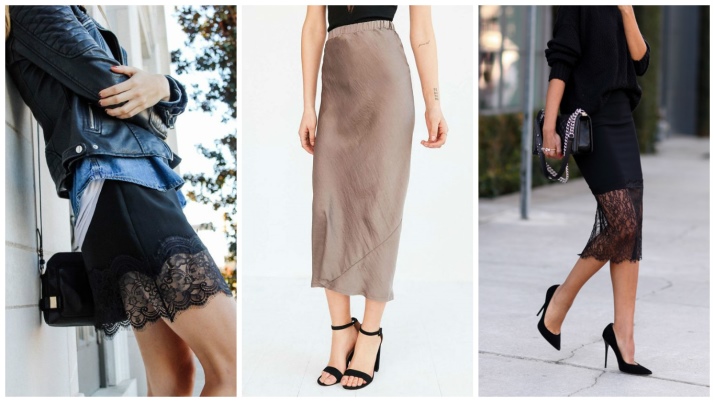 - Satin top with lace or combination dress should not be combined with defiant things of mini length, it is better to choose strict things. The provocative thing in the image is already present, so the makeup and accessories should also be moderate.