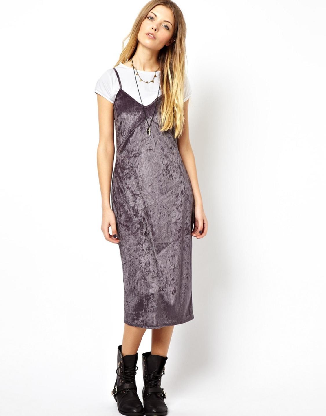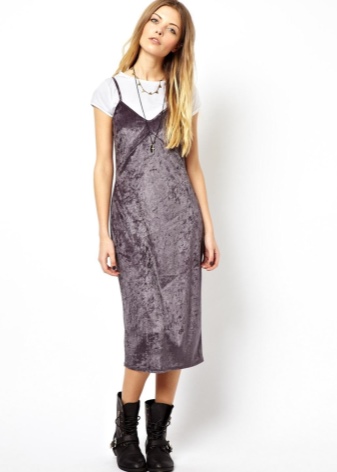 A combination dress over a t-shirt or turtleneck is one of the most fashionable trends for a casual style. You can wear white sneakers or coarse and massive boots. In addition, in street fashion it is permissible to use such a dress as a tunic - the most daring women of fashion wear it with jeans and trousers.