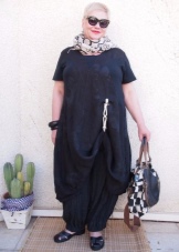 - Cut. Things should not hang in a bag and resemble a shapeless case. It is necessary to choose models decorated with vertical patterns that "stretch" the figure.