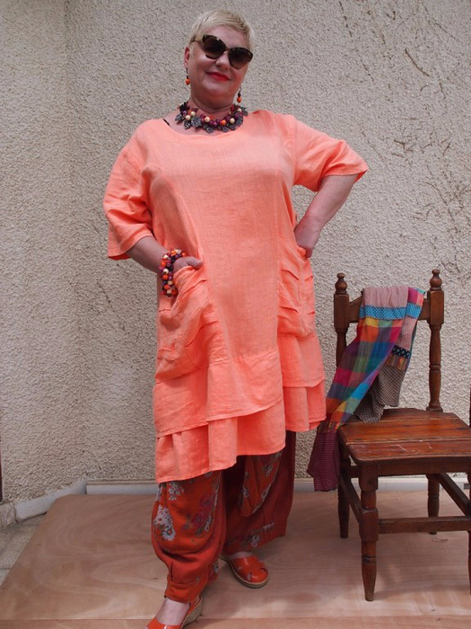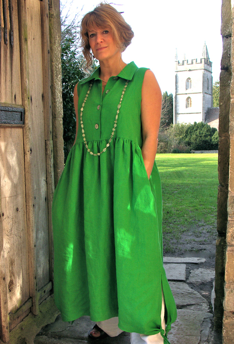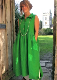- The dress is made of linen fabric A-shaped, straight or fitted in cut (the waist can be a bit high).