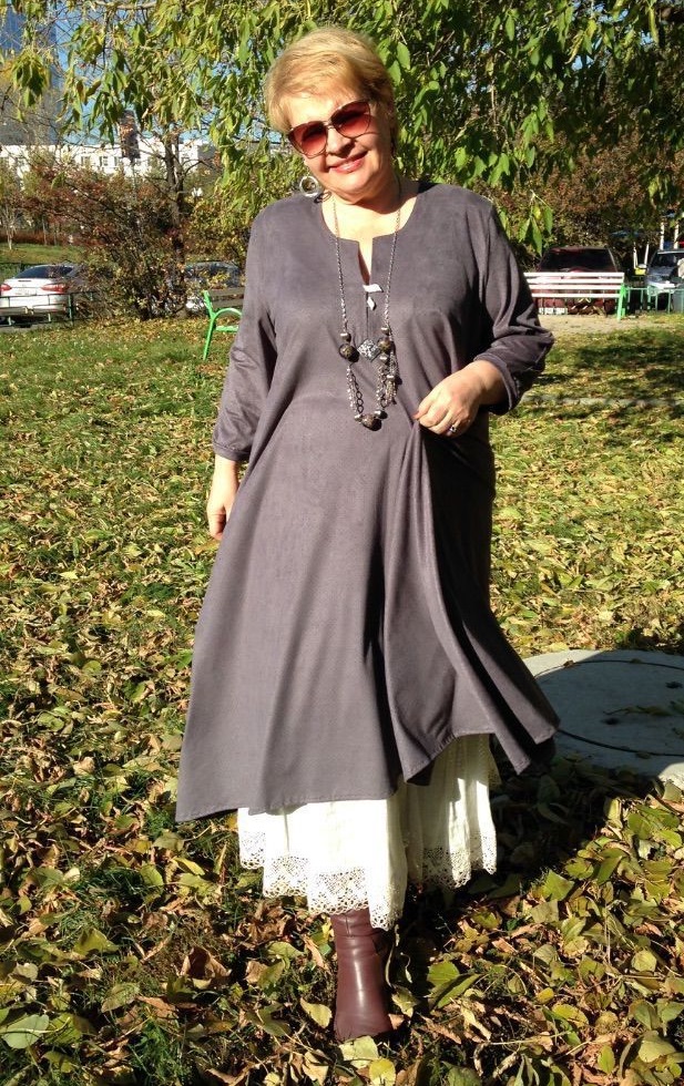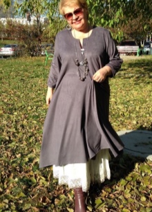 - Length. An excellent option for women after 50 with a fluffy figure will not only be dresses and maxi skirts, but also models of medium length.