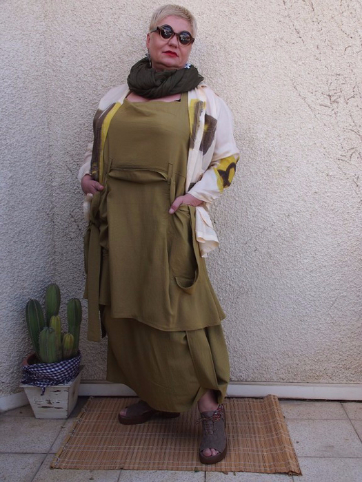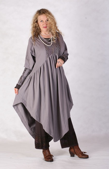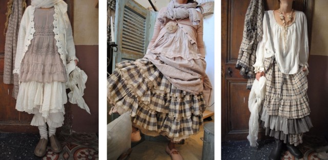 - layering in the form of longline skirts, frills, or wearing several pieces, dressed one on another;