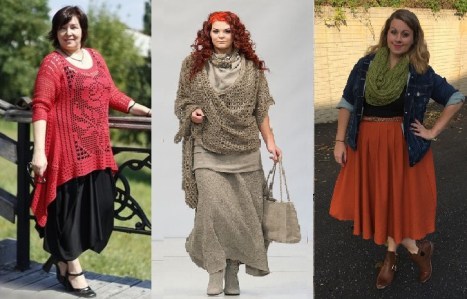 To create a unique, vivid image, it is recommended that full members of the fair sex combine maxi dresses or skirts with elongated knitted cardigans, complementing all this with a straw hat and a bag with ethnic motifs.