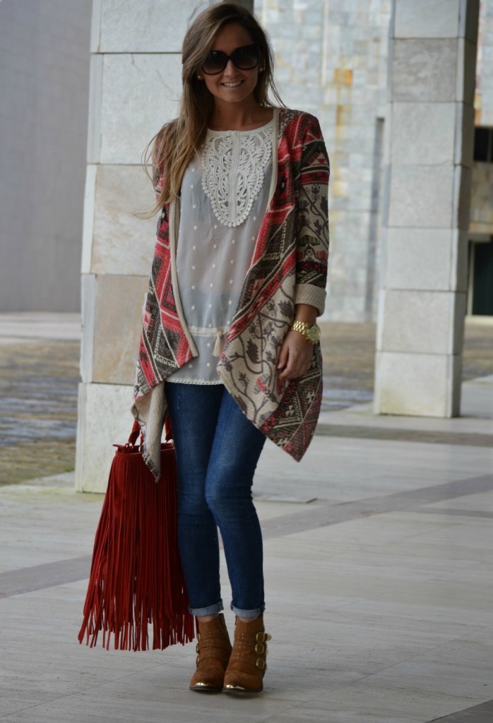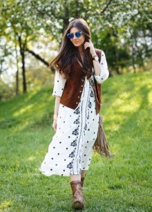 The main feature of boho-chic is its diversity. It includes many elements of grunge, folk, vintage and ethnic motifs. Due to this, the girl gets great opportunities for experiments. This trend in clothing for those who like to poke their fantasies, and not depend on fashion patterns.