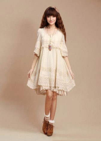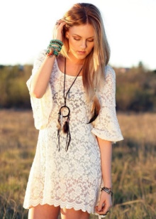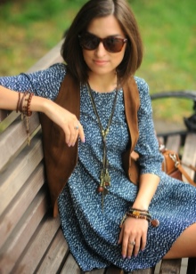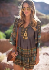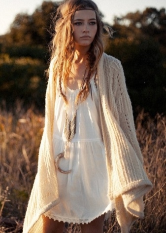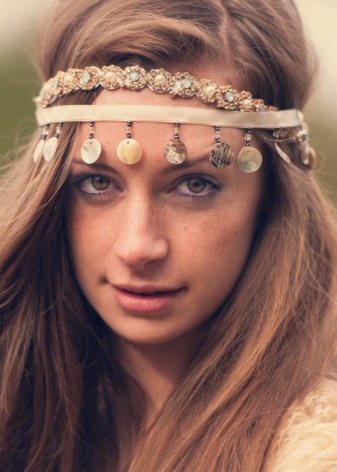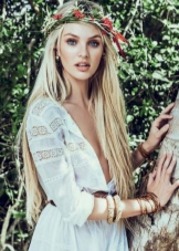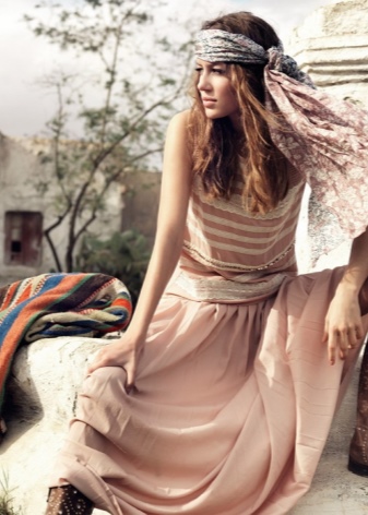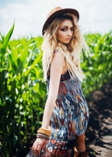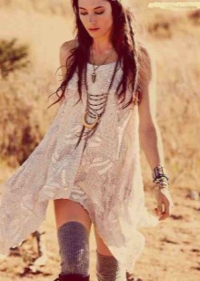 - Dress selection is unlimited. It should be light, flowing and made of natural material. The style can be any, but not tight. You can buy a model with an ethnic print or a plain version, and complete the bow with bright accessories. Not too much will be a hoop-gum, with which you can make in the bow shades of hippie style or delicate notes of romance.