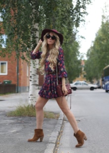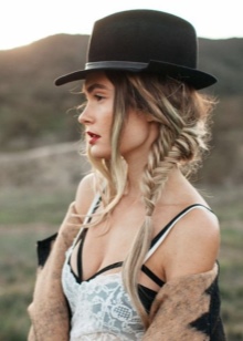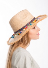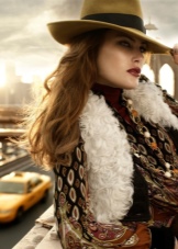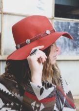 Hats to the style must be selected taking into account the features of the face and physique. The bohemian style does not limit the style of the headdress: it can be any and, as a rule, has a bright accent. The decor element can be a contrasting satin ribbon, vintage brooch, a flower, a strip of genuine leather or braided cord.