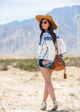 Most often in boho appear wide-brimmed and cowboy hats, Fedor, straw models with different widths of fields, Panamas, tribals, Argentine gaucho. Whatever accessory is chosen, it is important to give it a boho mood. Hat can be bought in the store and decorate it according to your preferences. Even if you place semi-precious stones on the tape, for example, turquoise, this will make it an ideal complement to the bohemian style.