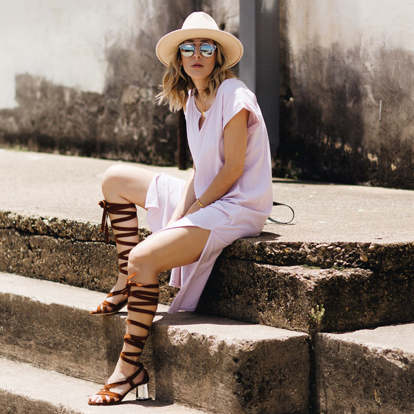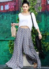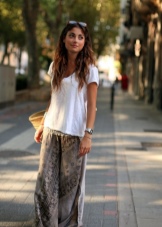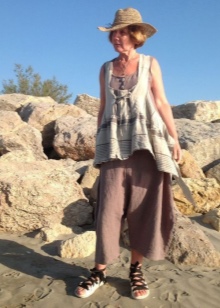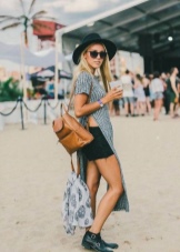 - The image can be given lightness, having picked up a monophonic T-shirt on thin straps to a long skirt. In this case, you can leave sandals, and a wide-brimmed straw hat is perfect as an accessory.
