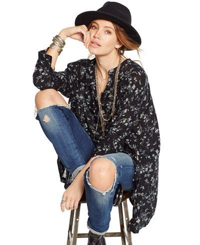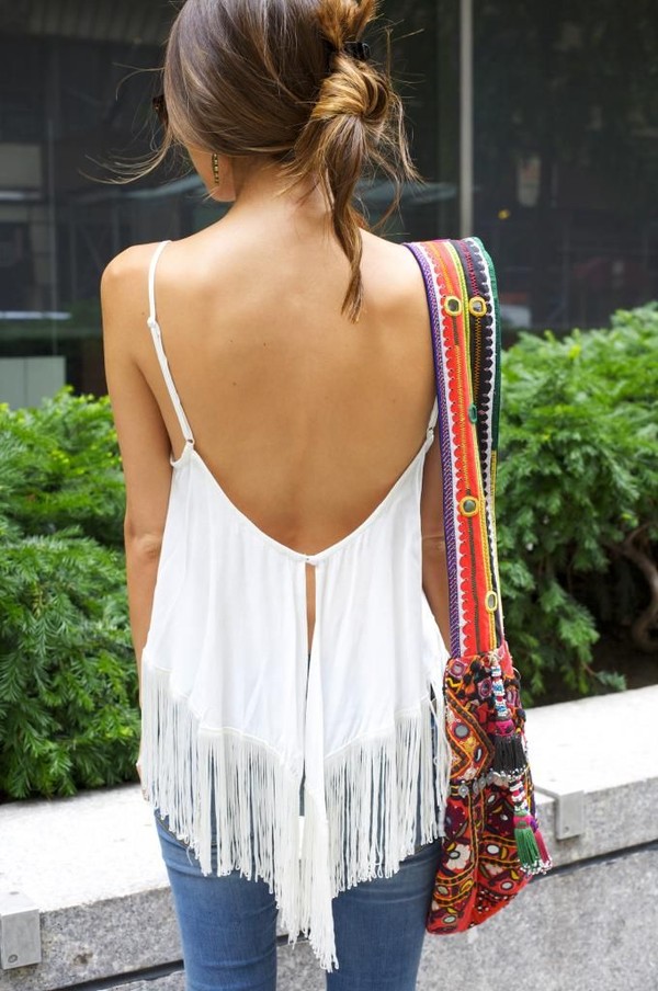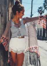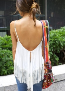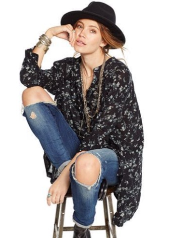 T-shirts and shirts in boho can be very diverse, depending on the desired effect. They can be delicate, romantic, with ruffles, ruffles, knitted decor and lace. If you want grunge, you can buy a top with a shabby texture of the material.