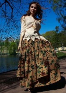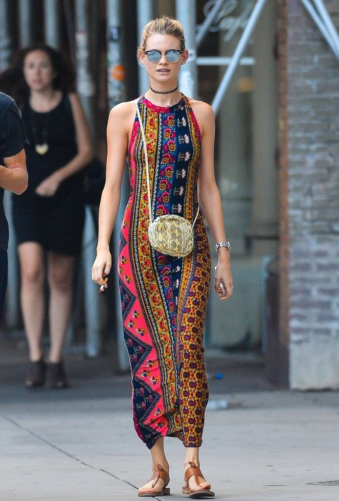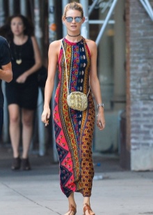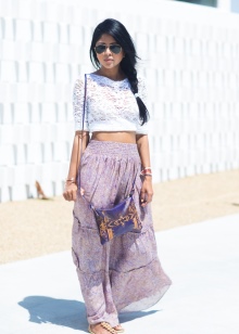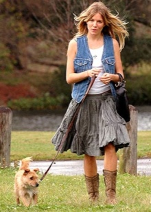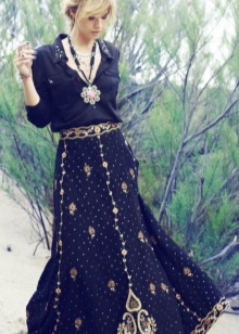 - In such a wardrobe should always be a maxi skirt, well-fitting. If there is a graphic print top, denim vest and sandals among things, the image will be perfect. These attributes are perfectly combined with such a skirt, forming a bohemian style.