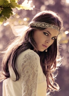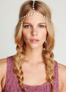 Almost always styling is decorated with accessories, regardless of the length of the hair. Bands, headbands with elastic bands and hoops decorated with beads, beads and semiprecious stones are used more often as jewelry.
