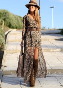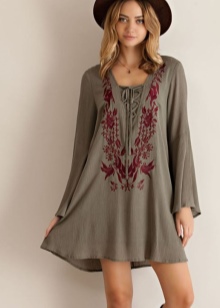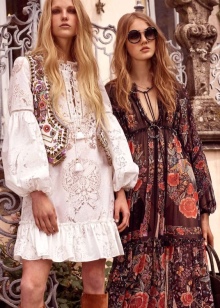 For dresses in the boho-style characterized by soft flowing texture of textiles. Fluttering in the wind, these dresses seem light and airy. Most often they are made of silk or chiffon with a graphic or floral print. No less interesting and ethnic colors.