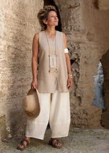 However, among the large selection of such clothing, you need to comply with the measure, so as not to overload the outfit. You can not use everything at once, so as not to destroy the harmony of the ensemble. Choosing clothes, we must not forget about shoes: it should be on a low heel or wedge. Such options are most relevant for obese women and balance the proportions of attire.