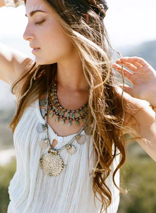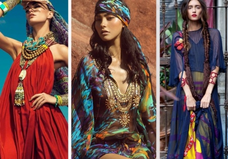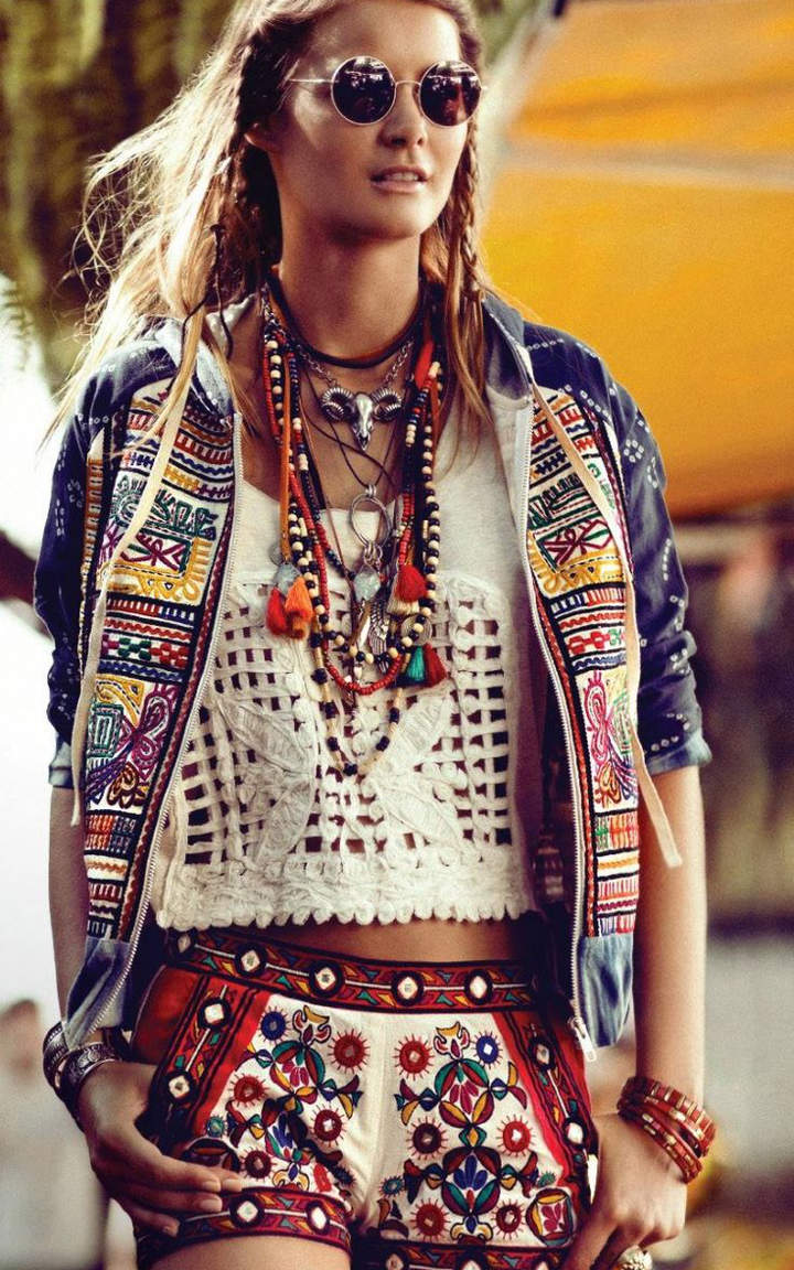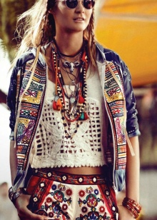 Ethnic boho prefers ornaments, eye-catching designs and generous décor of the dress with all sorts of accessories, among which amulets, bracelets and massive necklaces occupy a special place.