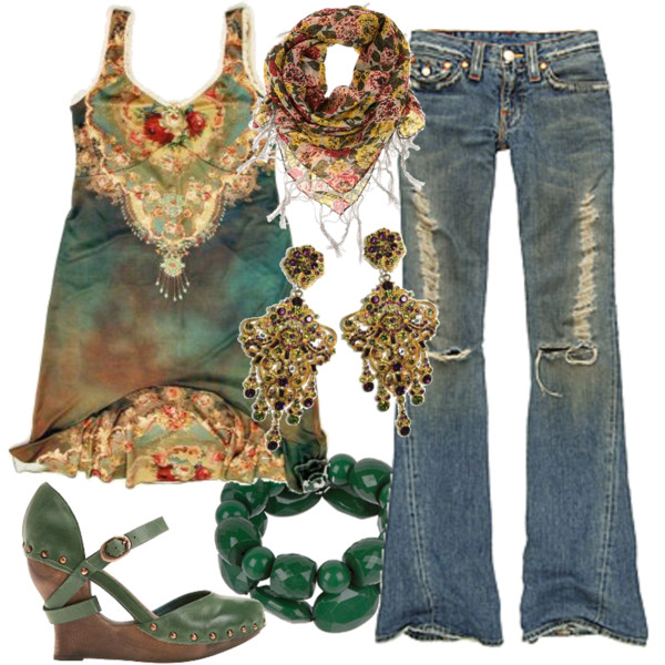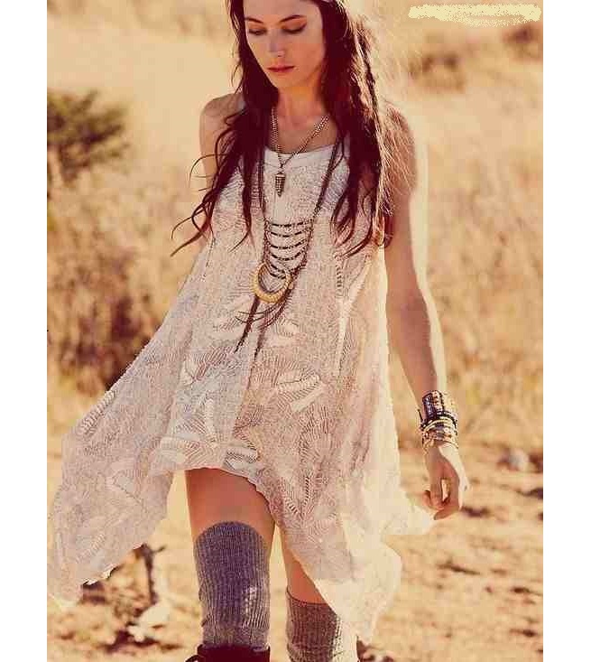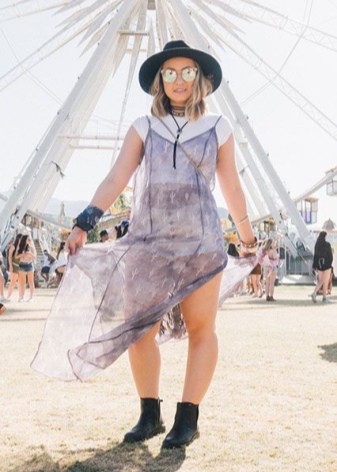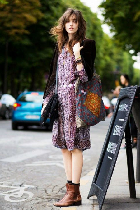 Due to the versatility, the style has several directions (hippie, vintage, new hippie, boho-chic, eco-style, grunge, etc.). It will be appropriate for a romantic date, a visit to the exhibition, but will not work where the dress code is clearly stated. Do not wear this outfit for office or theater.