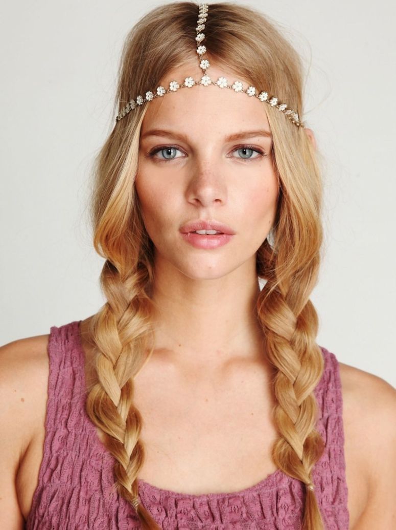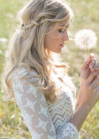 Curly curls are the perfect hairstyle for the bohemian style. Decoration elements can be different braids. They may be small or framing a head in the form of a wreath.