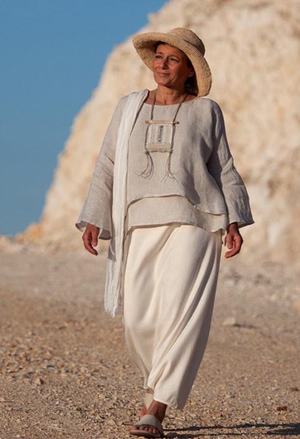 The direction of eco-boho is original and differs by the fundamental use of natural textiles and the rejection of animal fur and skin. Such products do not have bright colors, but they are full of plant prints.