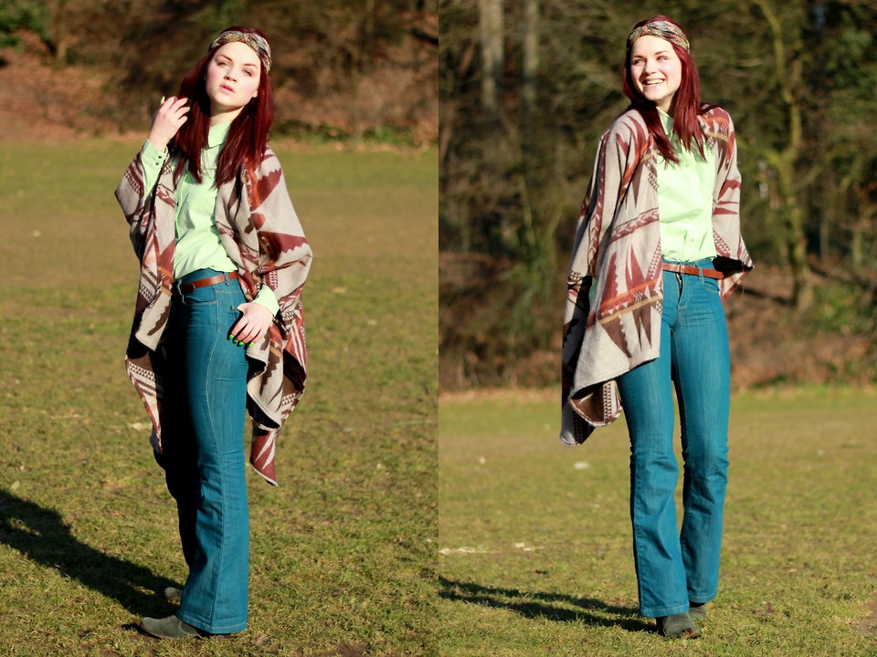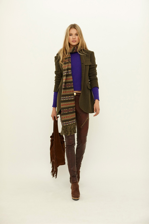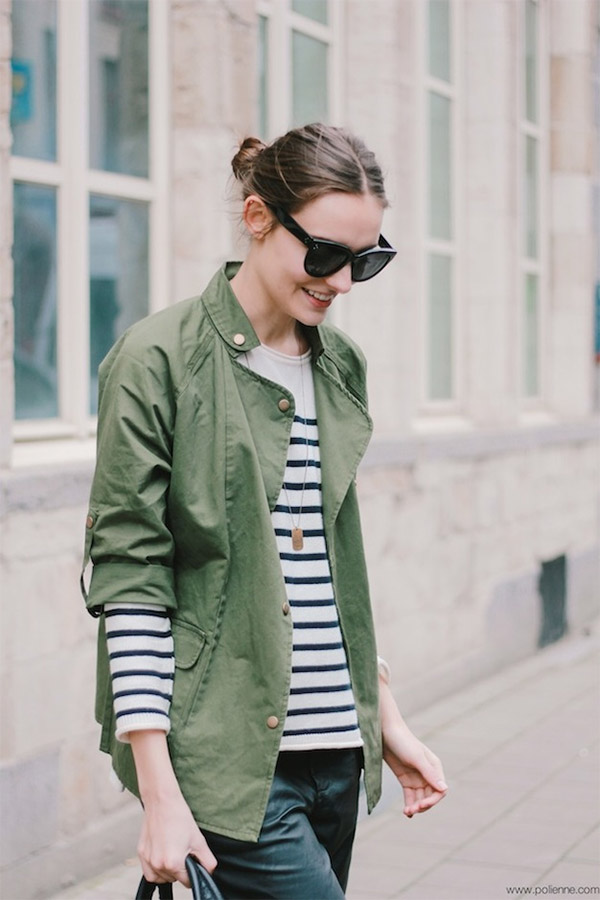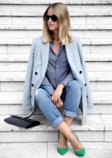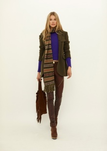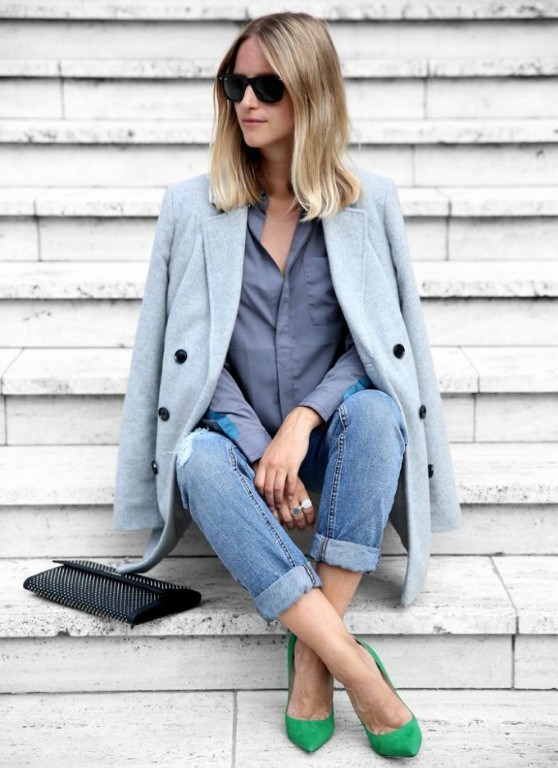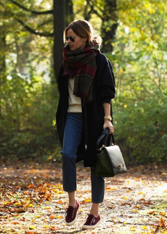 Bright accessories are a casual fashion trend. Therefore, a voluminous bright green scarf will harmonize perfectly with milky-colored coats, jeans and light brown shoes.