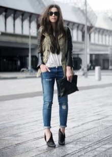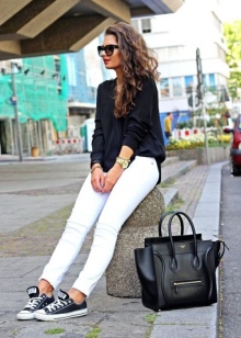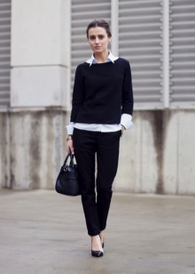 Especially popular are shirts that can be refilled or worn with jeans. It is recommended to withstand a certain color range - black or dark blue bottom and light top.