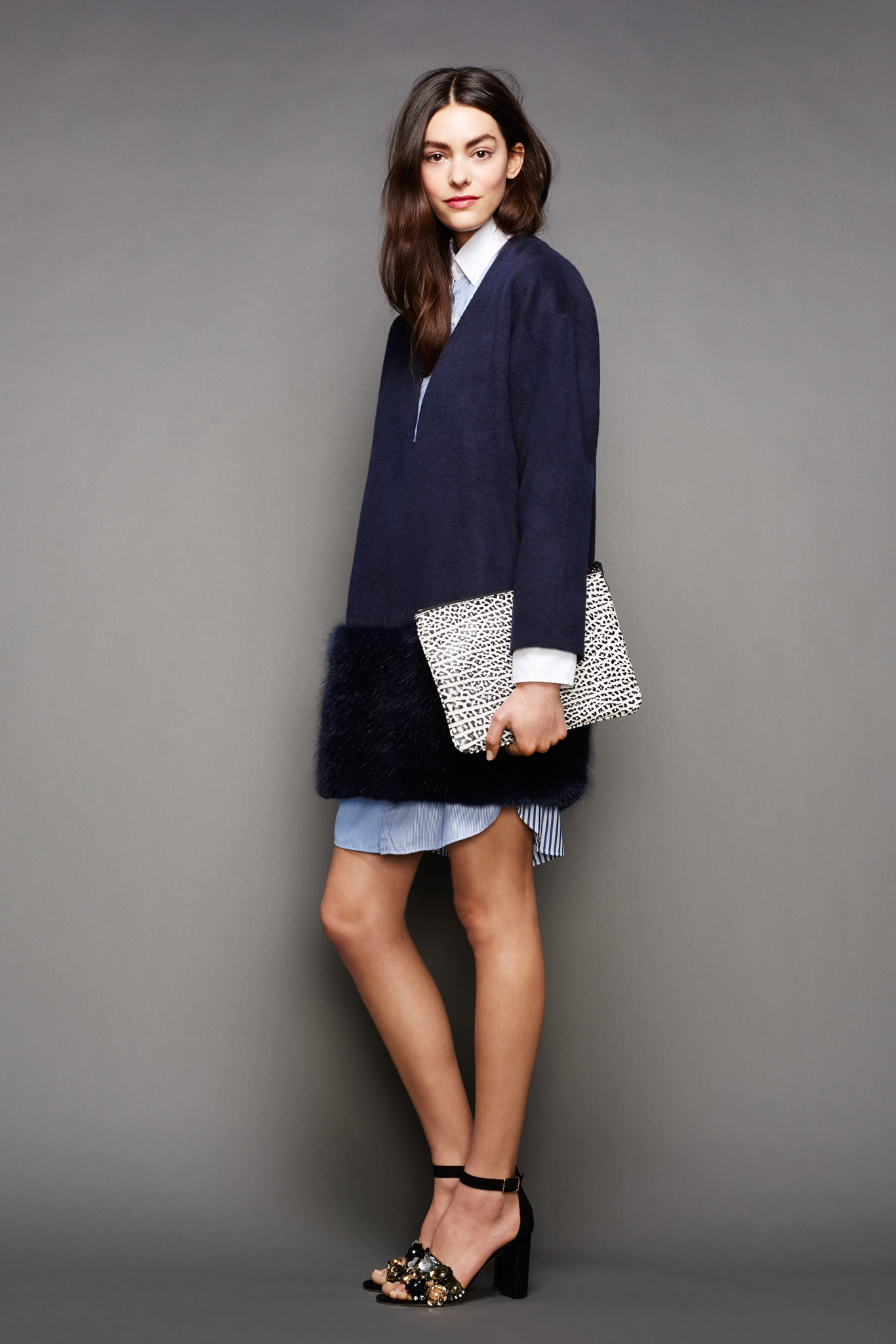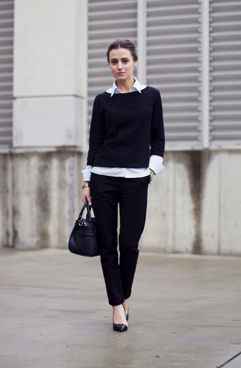 A watch, a small bracelet and a black handbag will complete the look harmoniously.