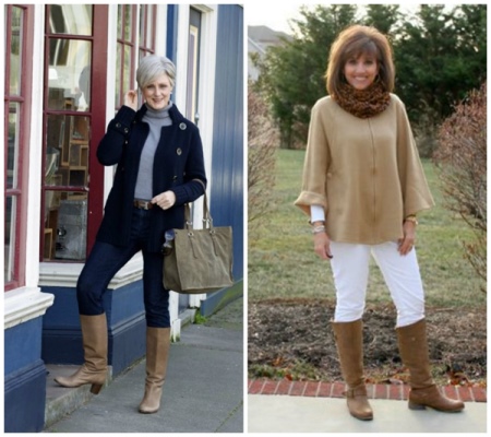 However, occasionally you need to deviate from the generally accepted rules, so a coat or sweater in Marsala color, bronze, bright crimson and orange shades are only welcomed among women of that age. Of the fabrics, it is preferable to opt for knitwear, cotton and denim. Pick up a loose style of clothing, trousers, midi skirts, jeans, dresses and overalls will look interesting.