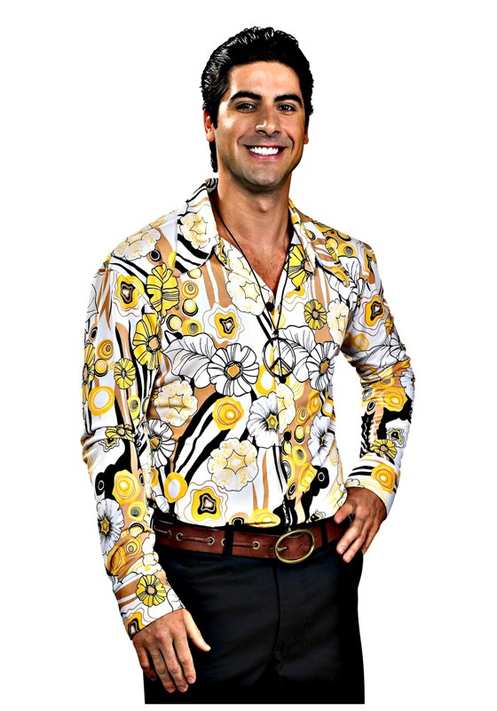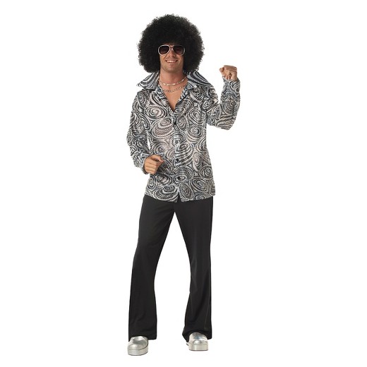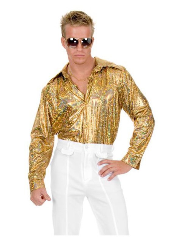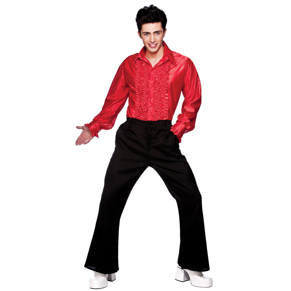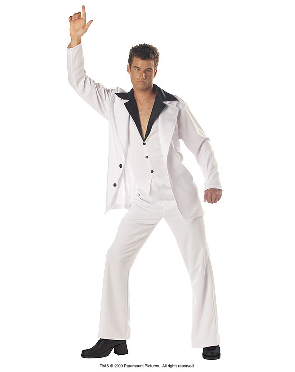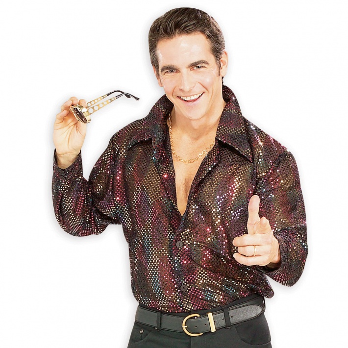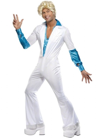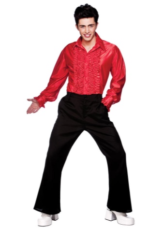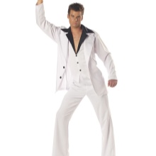 Men are much easier. They can complement their classic costume with a bright shirt or a colored turtleneck and shine in a disco style. The iconic white suit and black shirt is a classic disco style.