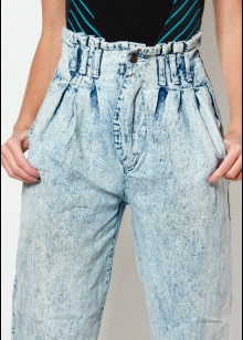In the wardrobe of every fashionist and every woman of fashion there were necessarily jeans, mostly flared, whose waist was understated. They were worn by men and women. Jeans decorated, often with their own hands, printed patterns, embroidery with the same sequins, beads. The so-called banana pants were fashionable. Of course, the name of so many interesting details of the wardrobe gave the appearance of a banana.