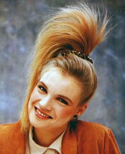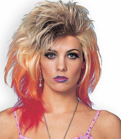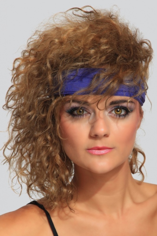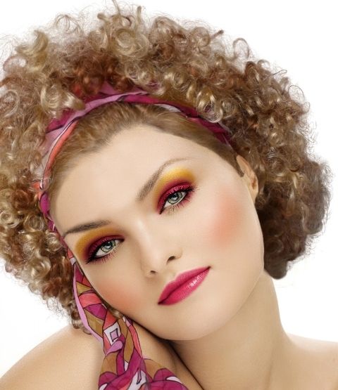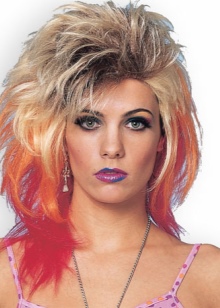 Disco style is characterized by acidic, and even bright colors in almost everything - in clothes, and make-up, and even in hairstyles. On the crest of a fashionable wave were lime, yellow, pink, orange, silver, metallic colors. Sprays for hair with a short-term effect of dyeing, artificial multi-colored hair strands, hairpins and elastic bands became fashionable - and all this was full of all shades of the rainbow spectrum.