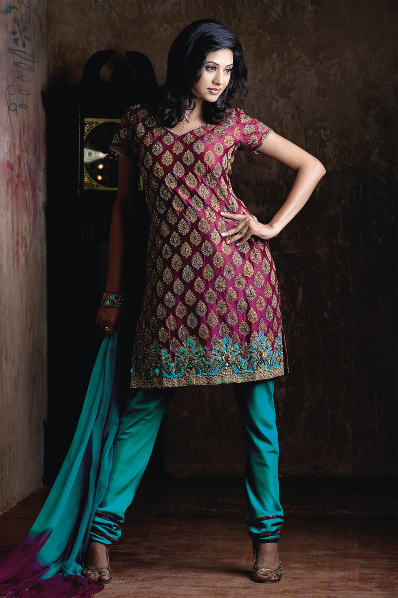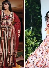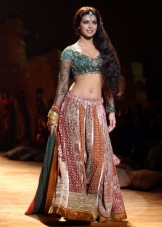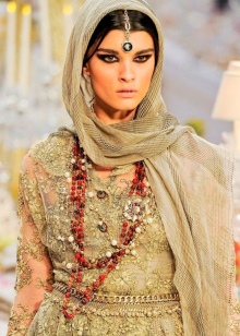 The ethnic style of India is unusually bright and traditional. The palette of shades is diverse, it allows you to choose clothes with regard to the color of your skin, eyes, body type and fashionable moods. Today relevant products made in orange, mint, pink, gold, olive, green and blue tones. No less popular are crimson, red, purple colors. Products of this direction are made of silk, flax, cotton, chiffon and satin.