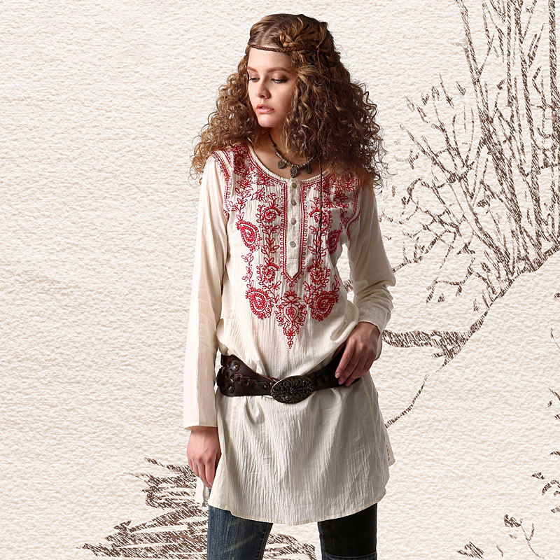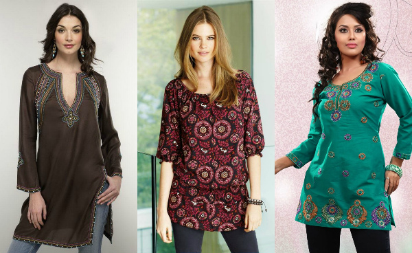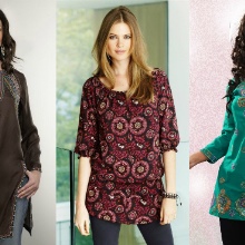 - tunic of different lengths with ornament or embroidery, with drapery or simple cut, textile or knitted;