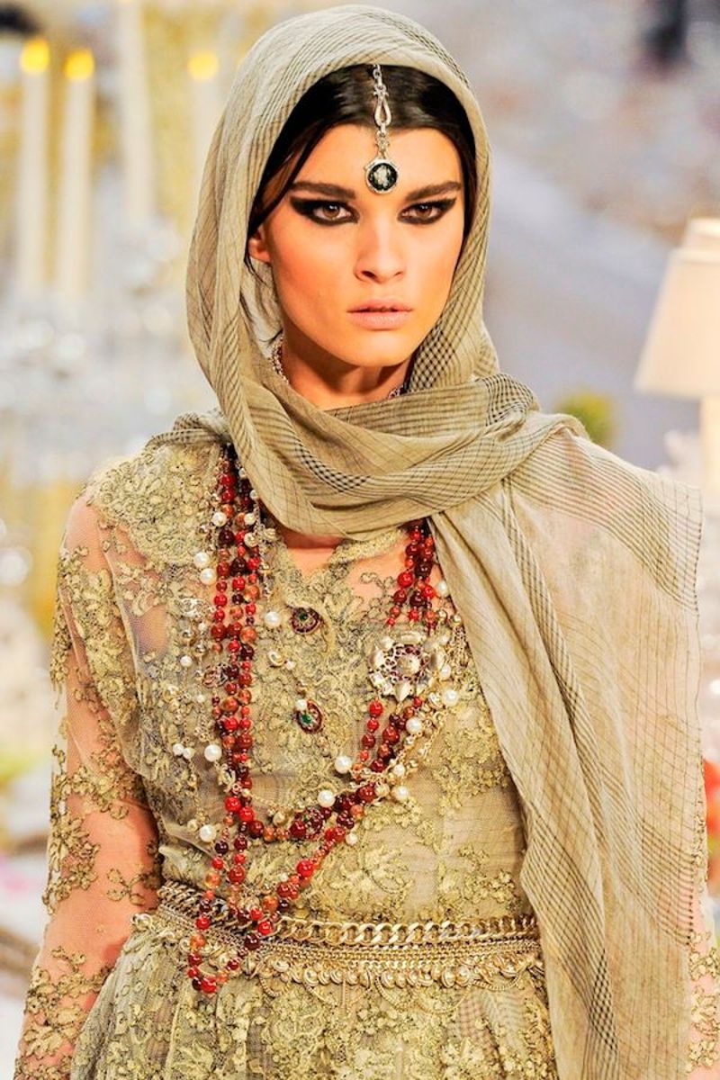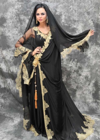 Arabian ethno does not accept the demonstration of the female body, but it looks incredibly feminine. The elements of the national costume successfully fit into the modern ethno-style and are very popular. The ideal accent of the ethnic Arabic-inspired set is flowing floor-length dresses of a free style.. They are perfectly combined with tight pants to match the dress.