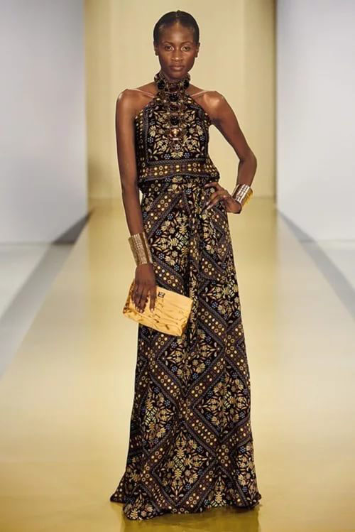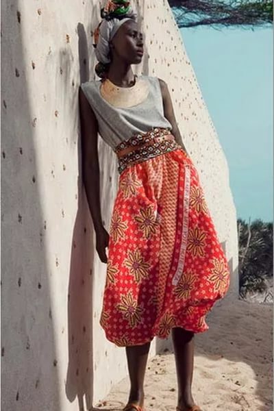 The ethnic image of Africa is original and extravagant. His color palette is bright, variegated and distinguished by a variety of prints. Products of natural colors are relevant (clothes in sand, blue, red, marsh, terracotta, coffee tint and their combinations). A distinctive feature of the style is the lack of monophonic clothing.
