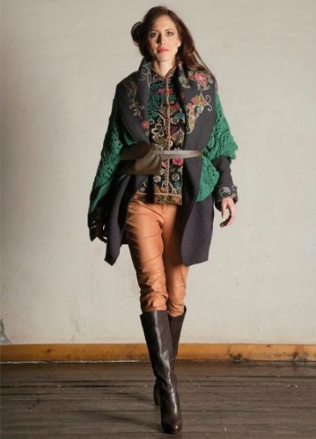 - free silhouette jackets and blouses with ethnic motifs and expressive texture;