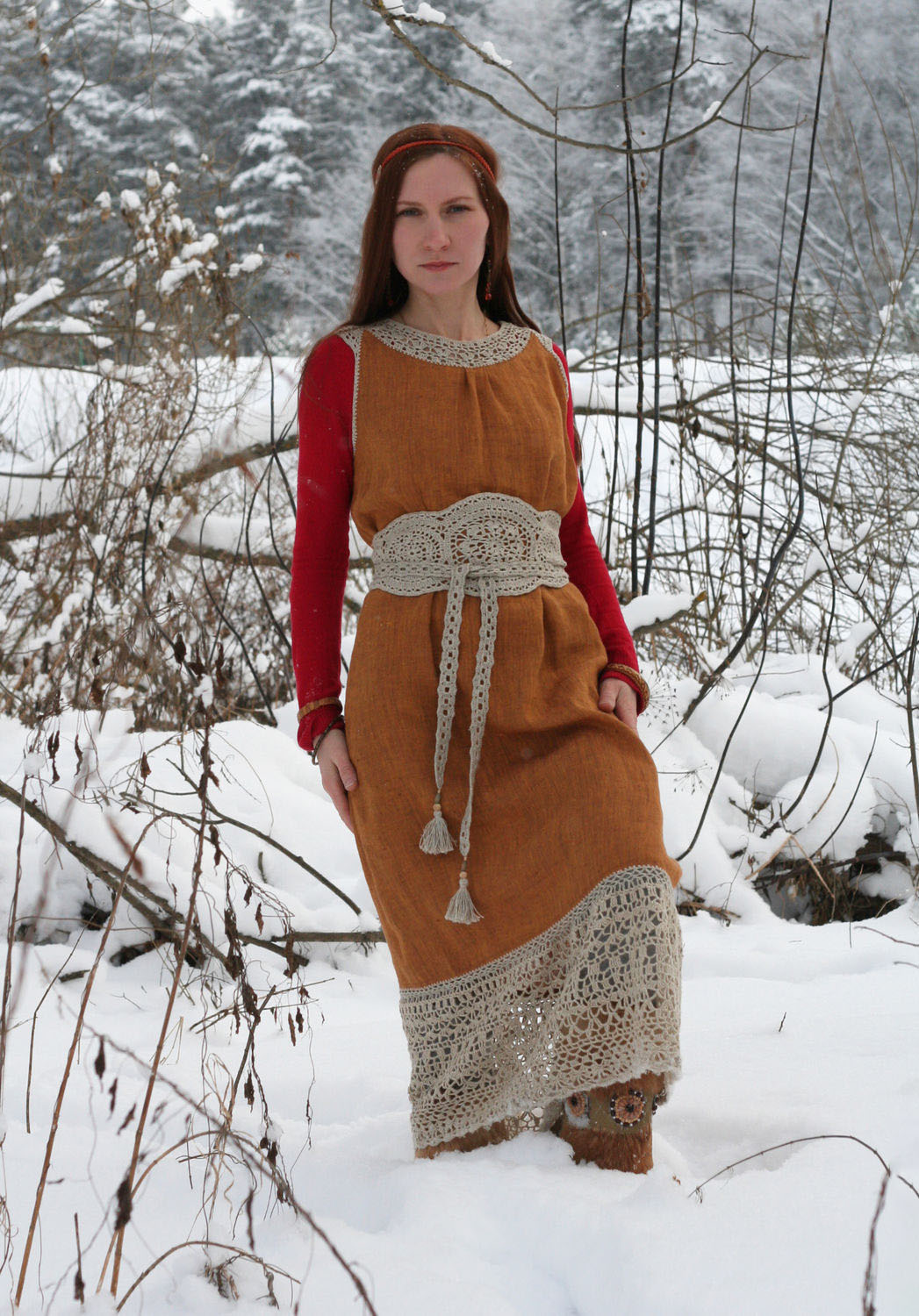 - long sundress free cut (Russian, with shades of hippie-style), its multi-layered combinations with other things;