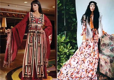 This ethno-style has its own characteristics. This is a rich culture, luxurious national costumes, thought out to the smallest detail. When creating an image it is important to choose the right color. The most exquisite ensembles are performed in white, black, crimson, pink, orange, yellow, blue, green and gold.