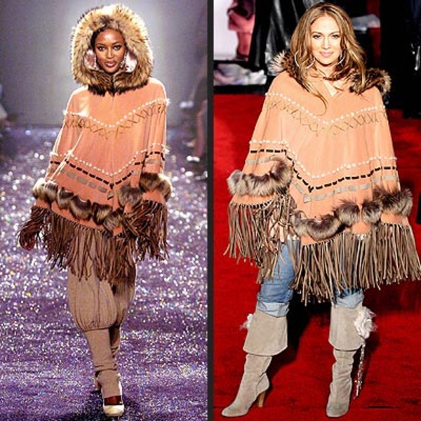 - fringed ponchos and capes with a geometric, abstract or stylistic print;