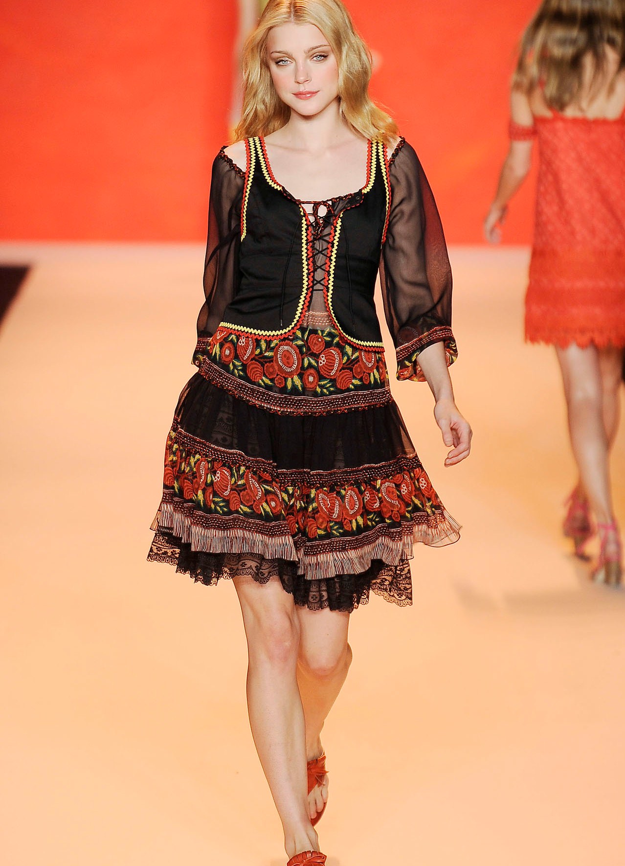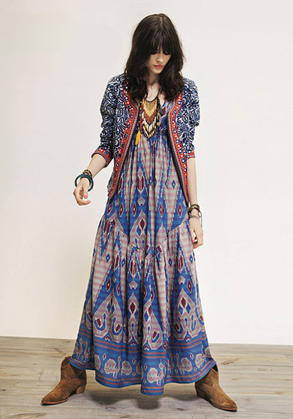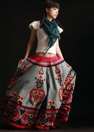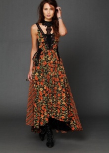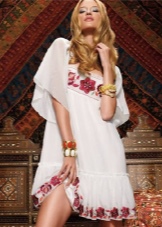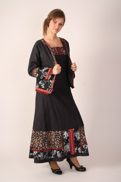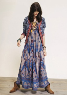 - Silhouette. The silhouette is usually straight or trapezoidal, the clothes are simple cut and do not hinder movement. If the sweaters - they are free. There are almost no short skirts in folk style, they are either maxi-length or knee-length. Dresses and blouses are usually with wide sleeves, tapering to the wrists. Shoes choose usually