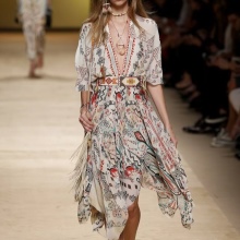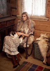 Dresses in this style are sewn from natural fabrics. Moreover, fabrics are used that belong to a particular nationality. Slavic countries prefer flax and cotton fabric, because of climate, Scandinavians like wool clothes. Representatives of the East make clothes of silk and jacquard, while Africans work with leather, suede and fur.