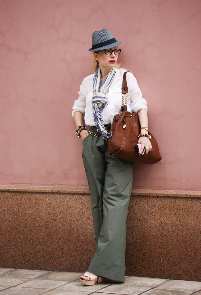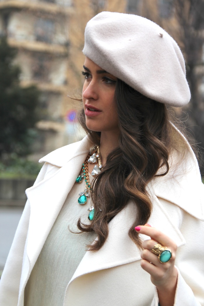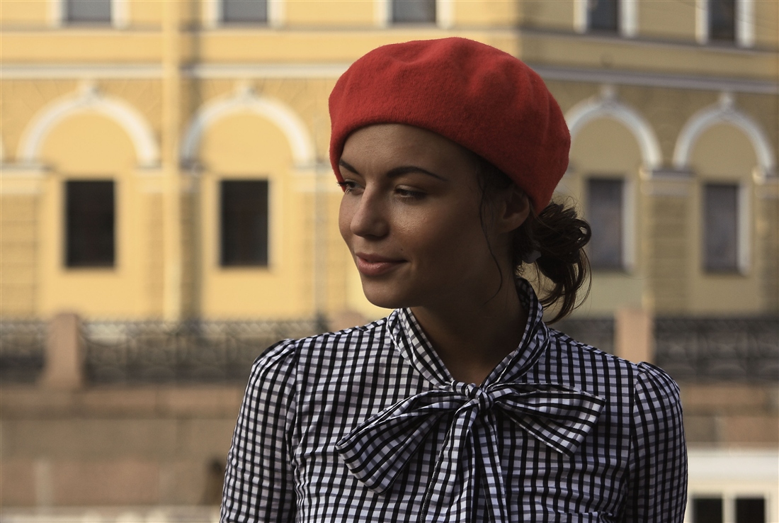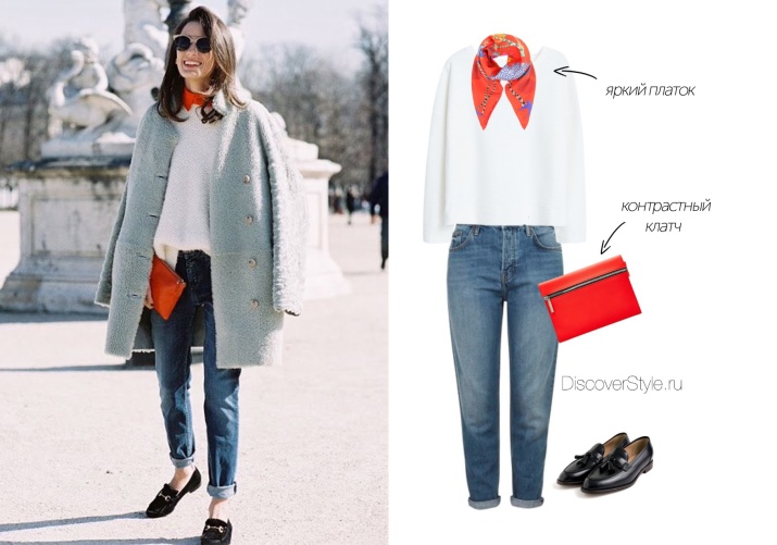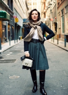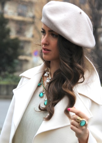 - Scarf and beret. The first should be long and wide. Wear them around the neck. Moreover, they are used not only in the cold, but also in the summer, replacing woolen products with light silk ones. Berets are worth picking up small ones, and wearing them, moving them a little back or to the side.