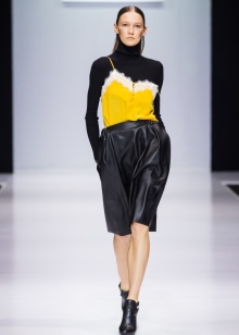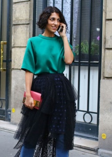 - Skirts. Their distinctive features are impeccable cut and strict elegance. The main styles are pencil - slightly tapering downwards; tulip - with a voluminous upper part, direct plowing. All - medium length. In addition, in the wardrobe, you can include skirts, maxi with cuts, but mandatory direct cut. For unofficial events and the use of puffy flared skirts.