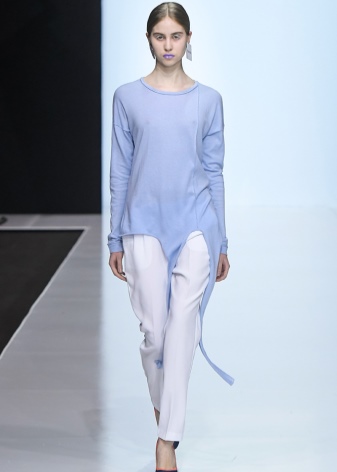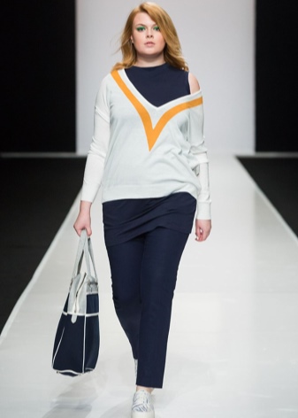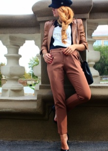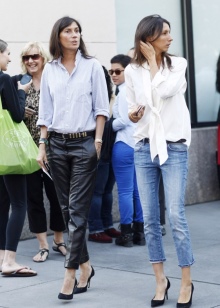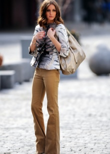 - Trousers. Not very popular item in this area of clothing. However, "just in case," it is worthwhile to acquire straight or slightly flared models. It is possible to use shortened models. The main rule - the lack of decorative ornaments on the pants.