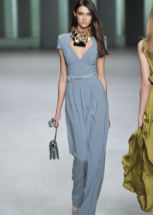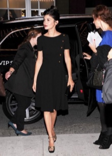 - Evening dress. May consist of a classic dress with an emphasis on the back. In this case, the length can be almost any - from minimum to maxi.Instead of a dress, it is allowed to wear evening overalls. Color depends on the preferences of the woman and her appearance, however, it is best to choose from black, beige, dark red or dark blue. As accessories used handbag and shoes to match. As additional details, you can use a shawl or scarf and a modest strand of natural pearls.