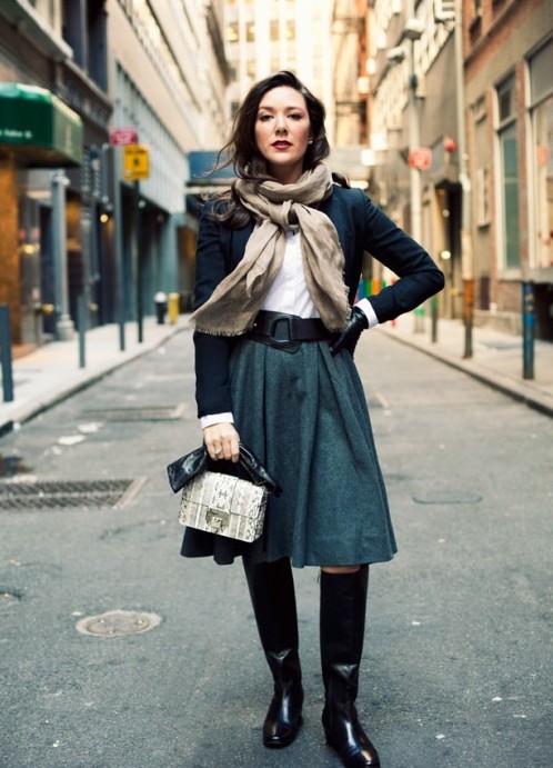 - Casual wear. On a cloudy autumn day, you can cheer up yourself and others by wearing a woolen fitted dress of medium length and slightly flared downwards; lightweight raincoat or beret. As an option for a warmer weather fit chiffon outfit with a thin knitted scarf as an accessory.