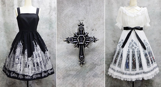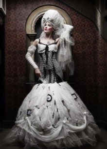All sorts of lace, jabot, laces, coarse high-heeled shoes or boots, unusual umbrellas, long gloves, caps with veils, large solid white metal jewelery complement the image (silver is mainly used, but white gold or platinum are allowed).