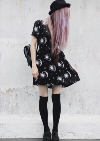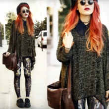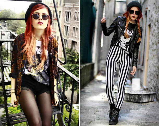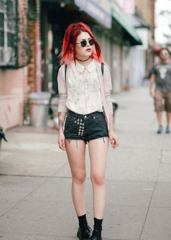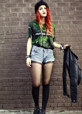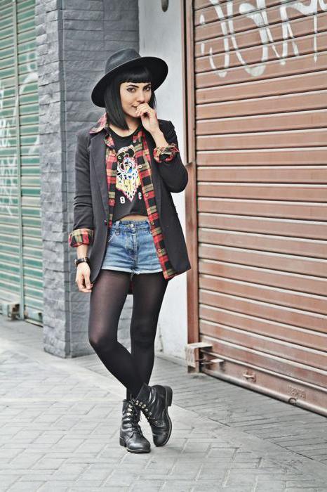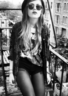 Careless in details, soft and relaxed. In the dress must be things with a worn and worn texture. From the main grunge it is distinguished by some liberty and vintage. He is characterized not only by jeans and shorts, complemented by dark tights and massive shoes.